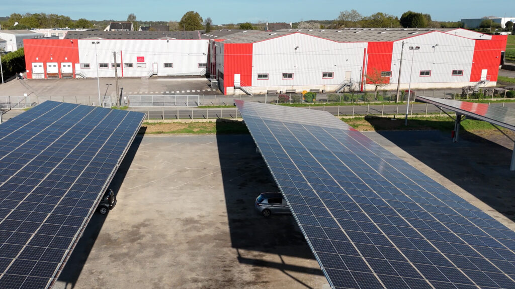 Nous avons installé des panneaux photovoltaïques en ombrière de parking, à notre siège à Carentoir. D’une surface de 1 268 m², leur production est prévue pour couvrir la consommation d’électricité des sites de Carentoir et de Rennes. Lancée en mars 2024, l’installation a produit plus de 244 000 kWh sur l’année 2024 !